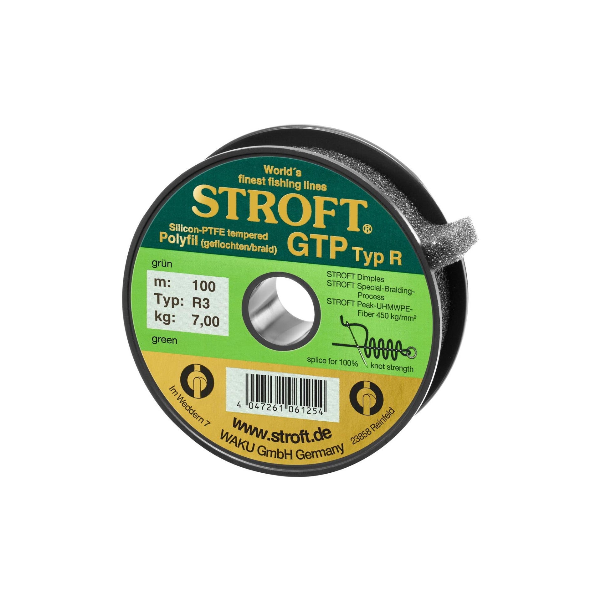 Das „R“ steht für „round and tight“, also für „rund und fest“. Diese Schnur wird in einem ganz speziellen Flechtverfahren aus Peak- UHMWPE-Fasern hergestellt. Typ R12 besteht z.B. aus 300×8 = 2400 Einzelfasern, die in einem sehr kleinen Winkel miteinander verflochten werden. Dadurch wird ein nahezu kreisrunder Schnurquerschnitt erzeugt, der an der Oberfläche pfeilähnliche Dimpel (engl. Grübchen) aufweist. Diese „runde und feste“ Spezialflechtung birgt neben den sehr guten Gesamteigenschaften aber noch einen anderen großen Vorteil, den viele andere der sogenannten „Geflochtenen“ nicht haben. Nämlich: Bei allen STROFT GTP Schnüren lässt sich eine selbstklemmende gespleisste Schlaufe herstellen, die eine deutlich höhere Tragkraft hat als alle ansonsten bekannten Knotenverbindungen. Bei den Typen R01 bis R06 handelt es sich um extrem feine Schnüre in einem tatsächlichen Querschnittsbereich der Durchmessern von 0,07 mm bis 0,13 mm entspricht. Eine spezielle Peak-UHMWPE-Faser, in Strängen gebündelt, mit jeweils nur sehr wenigen Einzelfasern, ermöglicht den Einstieg in diesen Bereich. Allerdings ist eine Serienfertigung in größerem Umfang nicht wirtschaftlich, da für diese Stärken kein größeres Einsatzgebiet vorhanden ist. Dennoch stellen wir diese feinsten Typen hier vor, auch um zu zeigen, was technisch möglich ist.