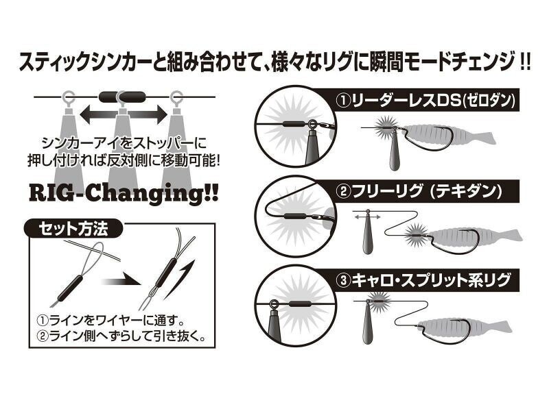 Die DECOY Multi Sinker Locks sind dazu gedacht, um in Kombination mit den DS-6 Weights schnell die Montage vom Free Rig zum Jika Rig oder zum Caro-Rig ändern zu können. So kann man mit einer Montage flexibel fischen und sich auf die Vorlieben der Fische einstellen. Natürlich können die Multi Sinker Locks auch als Stopper für das Texas- oder Carolina Rig verwendet werden.